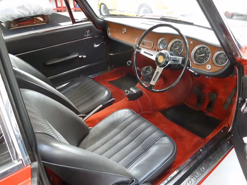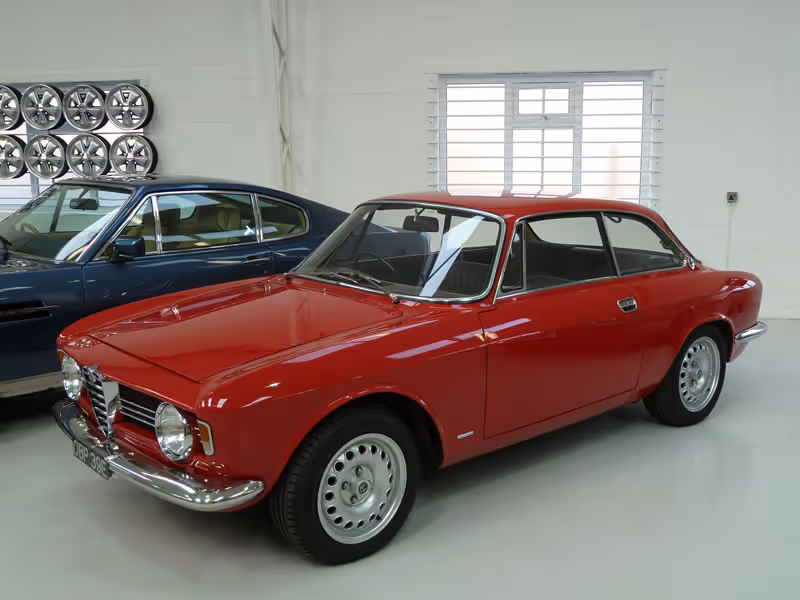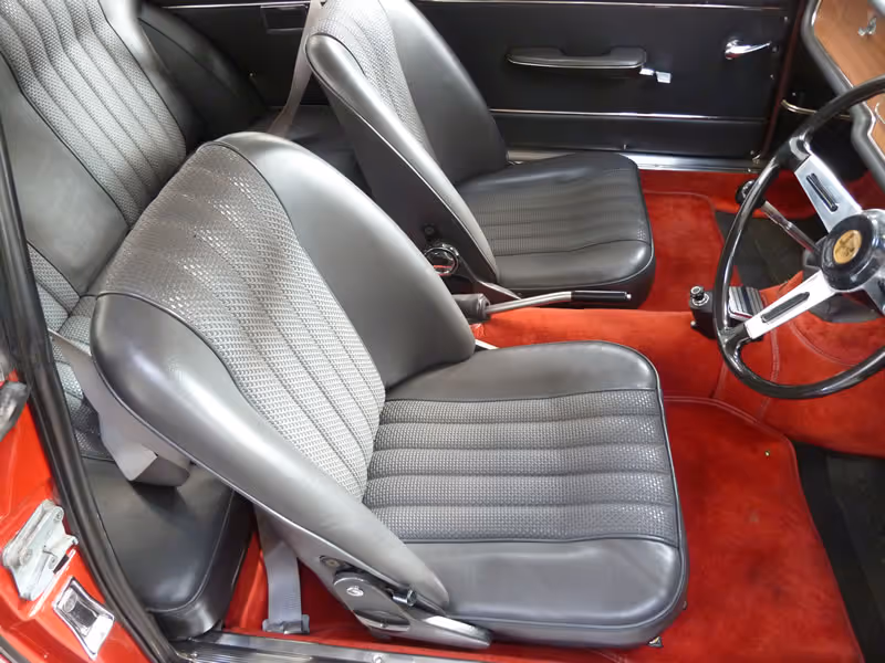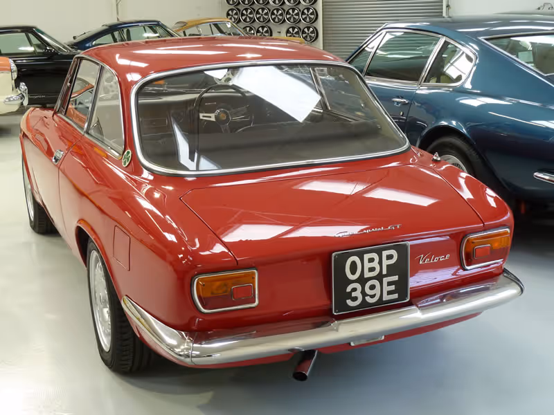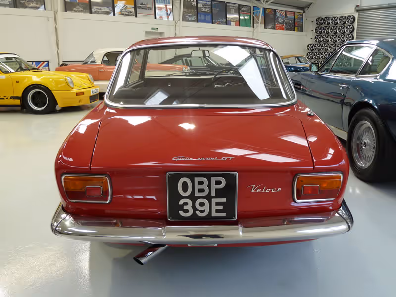 Manufactured in August 1966 and supplied via Mangoletsi in Knutsford, Cheshire to its first keeper on 24th February 1967, it was to remain in the same family for the next 44 years covering an indicated 37,500 miles - having spoken to the last owner, this mileage is he says accurate and certainly, the MOTs on file go a long way to substantiating this. With only 2 further keepers and a couple of thousand miles added since 2009, this is a little gem of an Alfa Romeo - the Rosso coachwork has been refreshed some years ago but the interior is faithful to its original build, with both the original Skai trim with red carpets being in almost perfect condition.