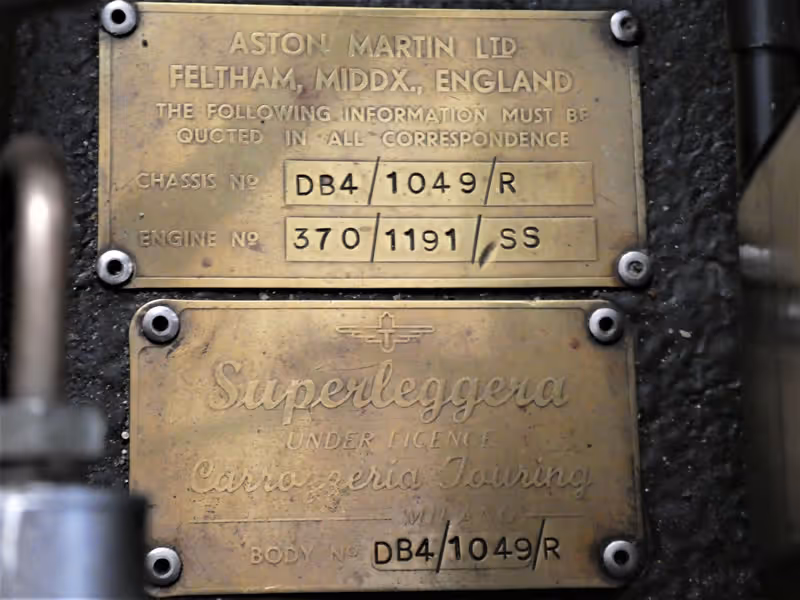 Dispatched by Aston Martin Works on July 5th 1963, the accompanying factory build records and Heritage Certificate confirm chassis 1049/R as being the second to last DB4 Saloon produced.