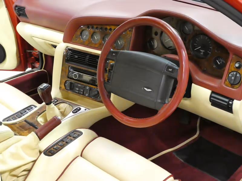 An interesting and complete history accompany's this Vantage which was delivered new to the then Chairman of Middlesborough Football Club in October 1997. He evidently greatly enjoyed the car driving as he covered nearly 49,000 miles in his 5 years of ownership. He maintained the car thoroughly and there are nine service stamps from the supplying dealer during his time of ownership.