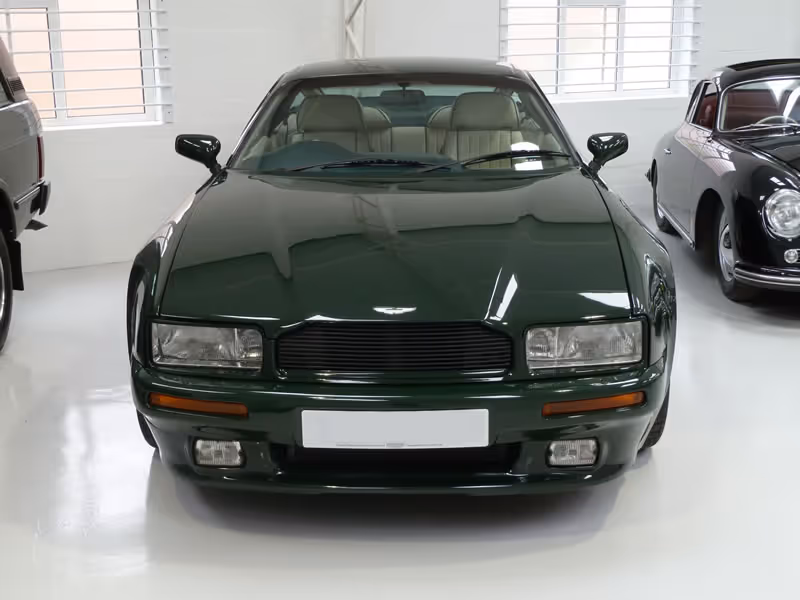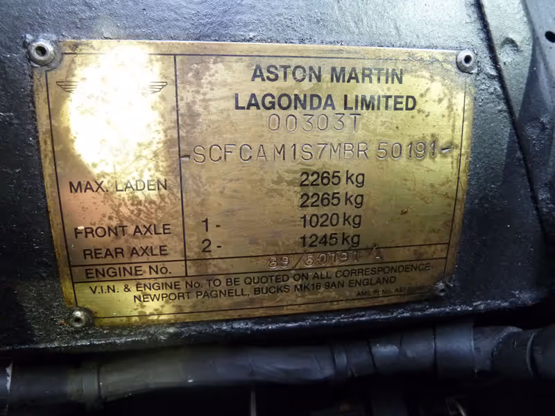 This fine example is the later 6.3 Litre 4 value version with high lift cams and pumps out a genuine 500 BHP and a 460 lbs ft of torque. Supplied by Stratton Motor Company to its first keeper in 1991 and converted by the factory for him in 1994, the car was last sold by the Aston Martin Heritage dealer Nick Mee Ltd in 2007. In line with their Heritage status, it was beautifully prepared; nothing has changed. All subsequent servicing has been entrusted to Aston Martin Heritage dealers or marque specialist, Chicane Classics. There is a comprehensive history file from day one, together with a fully stamped service booklet and Mot's back to 1994 verifying the cars low mileage.