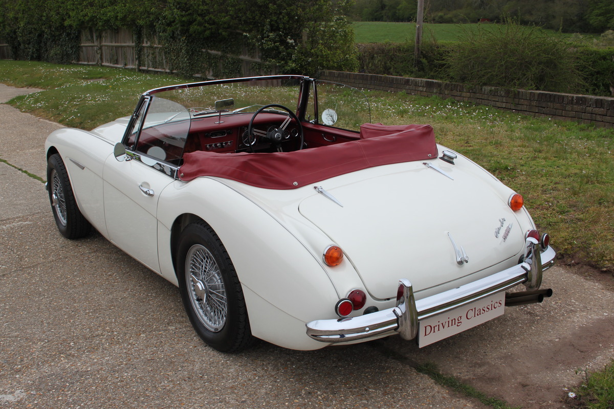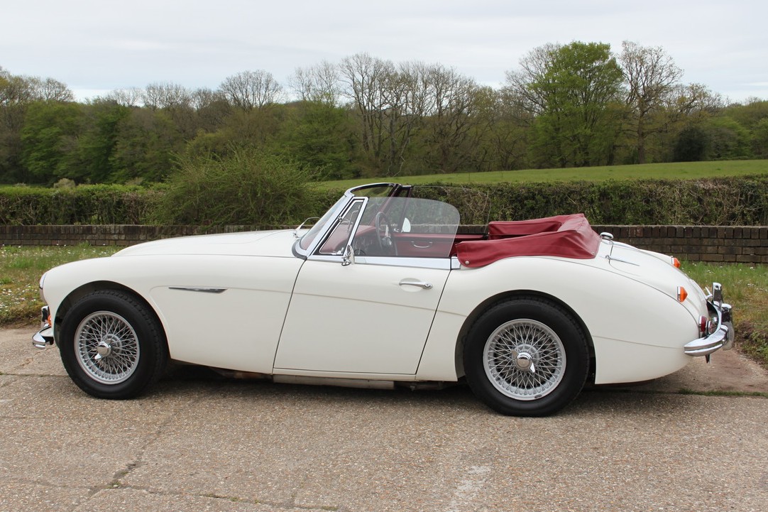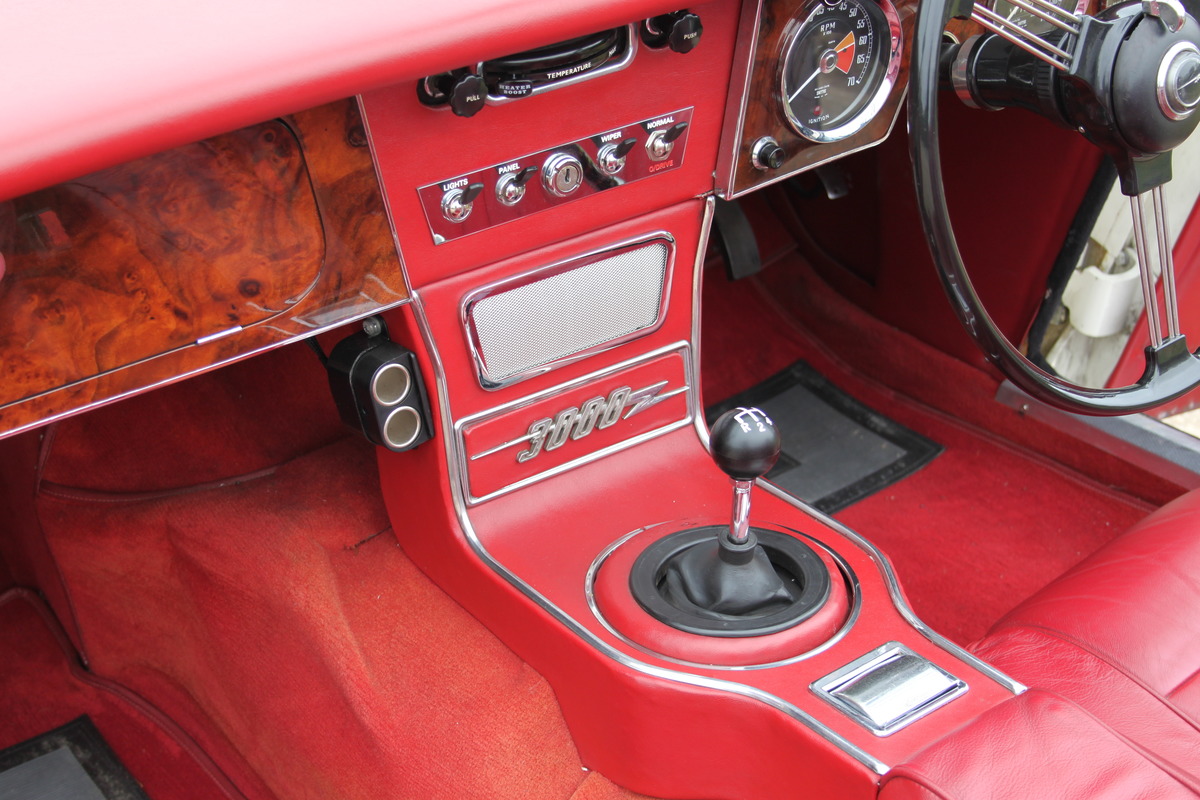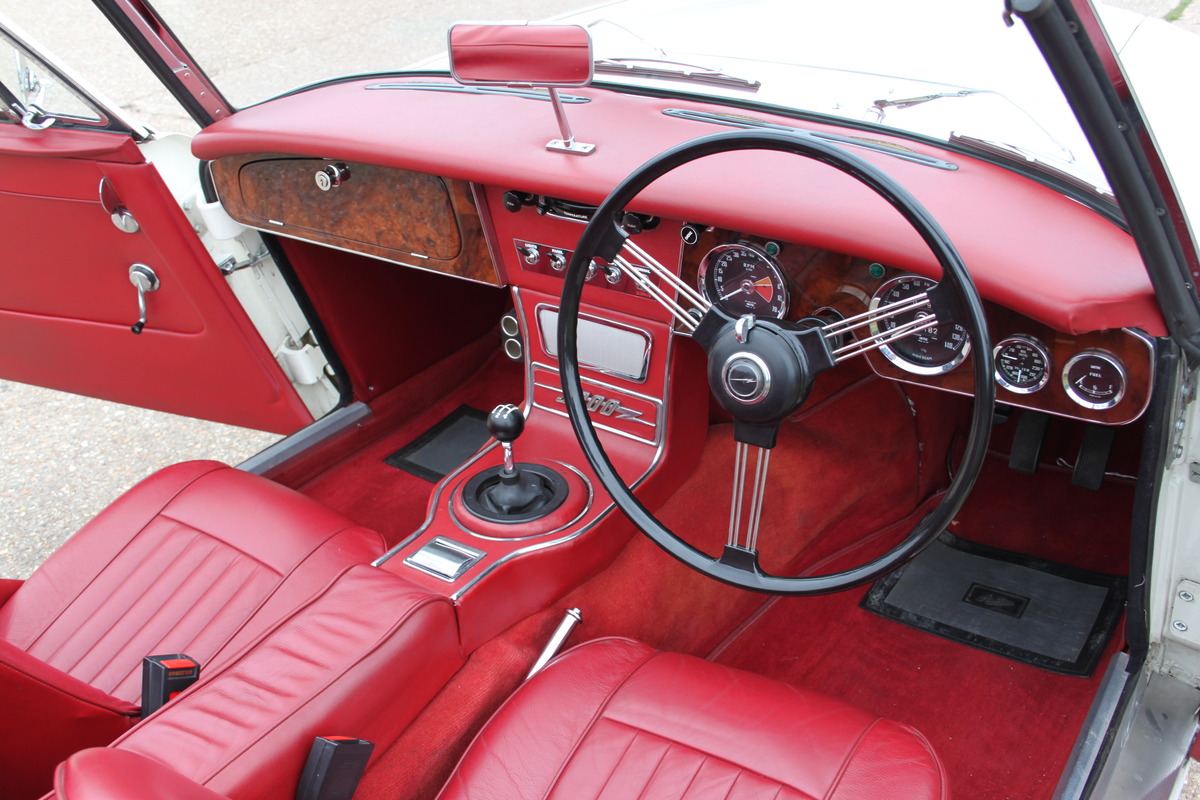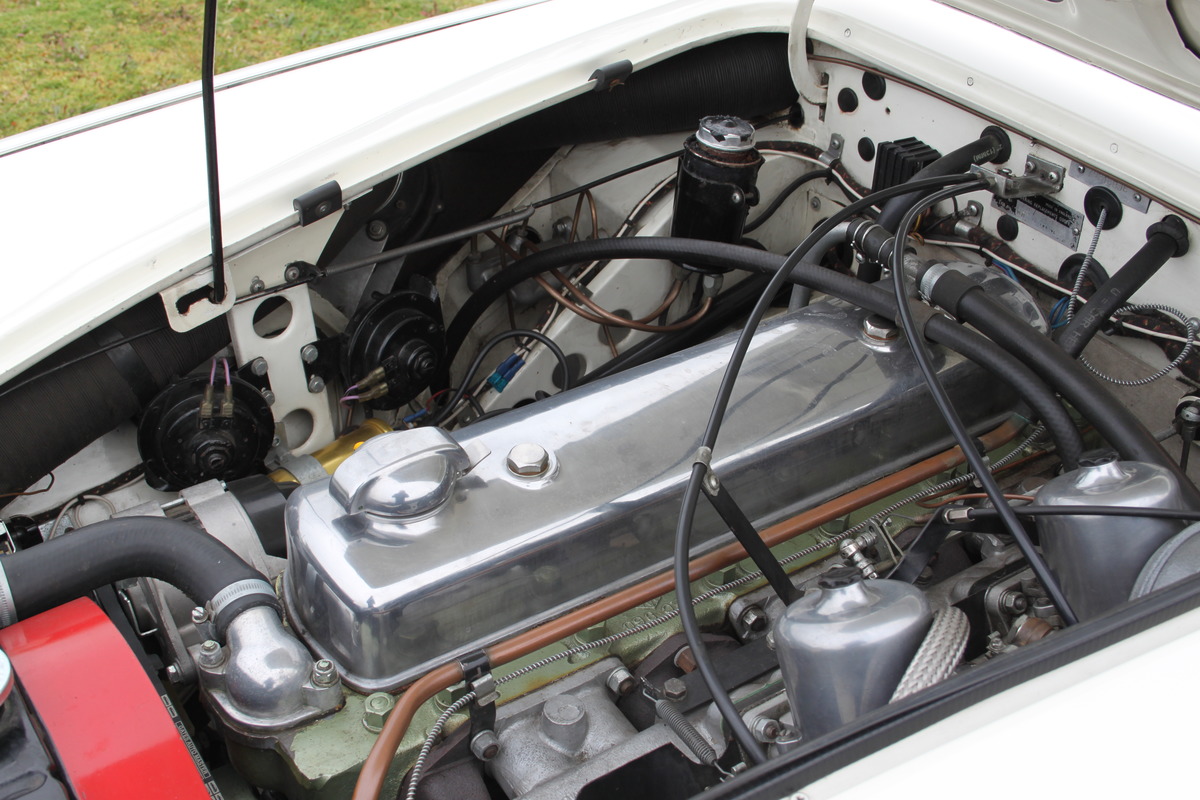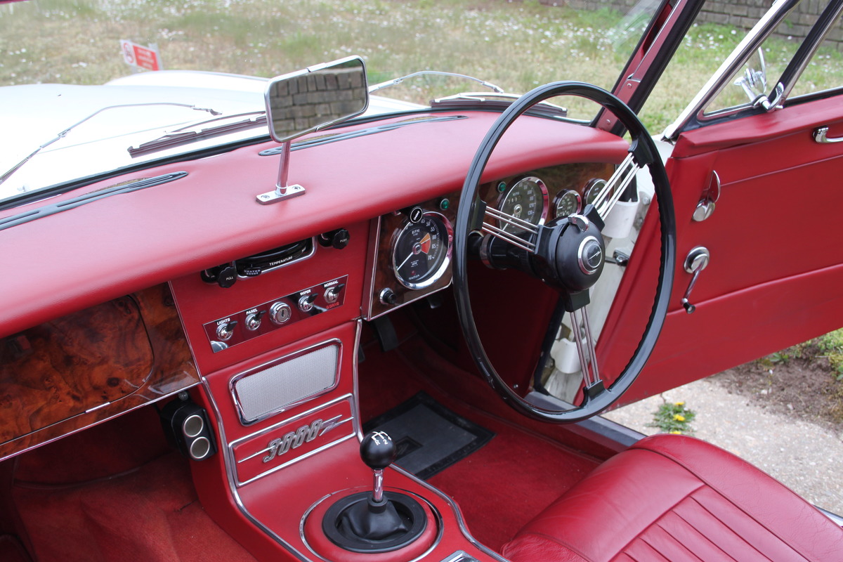 Finished in Ivory white with red trim along with a blackhood, sensible additional factory extras of heater, wire wheels, adjustable steering column and overdrive were specified. Pleasingly nothing has changed as this 'Big Healey' remains as built today.