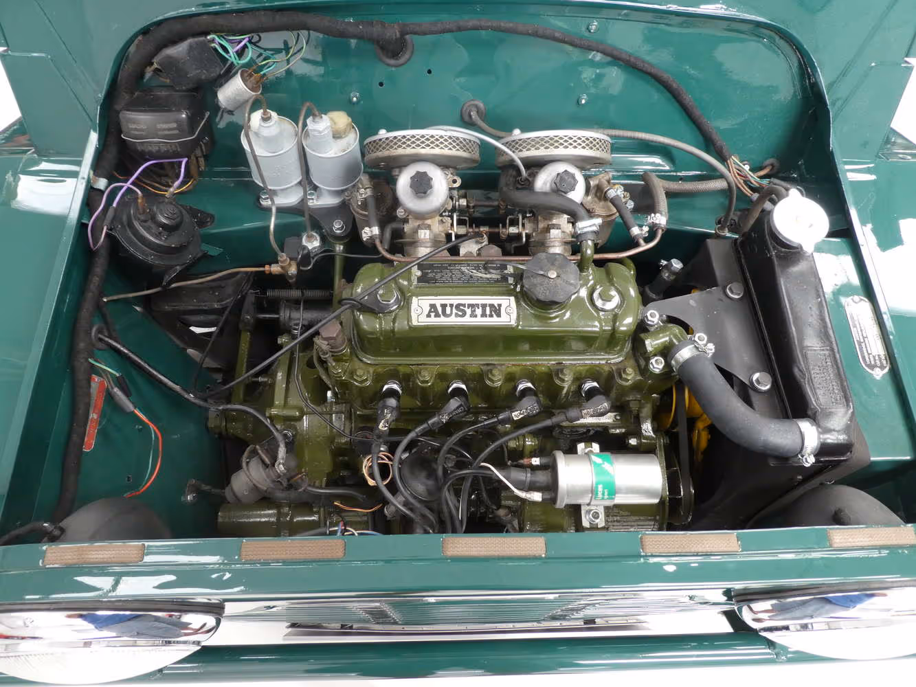 This lovely home market Moke was produced in September 1965,thus just a year into its production, and sold by Wimbledon Motors Ltd.Pleasingly the Heritage certificate on file confirms its was originally spruce green and that it retains its original body, and the interior is correct such as it is, so very nice to see a standard looking car running the correct 10”wheels.