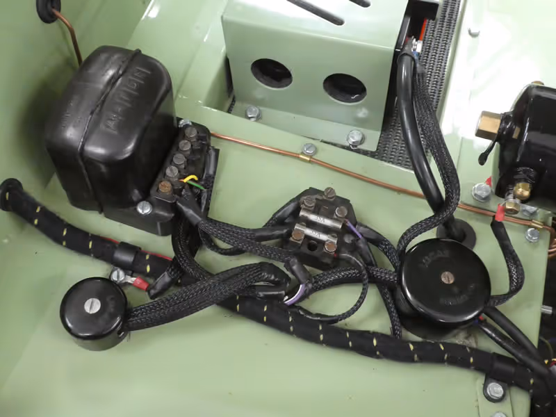 There have a been a number of sensible upgrades on the electrical side to improve both safety & the driving experience; a new 12v loom negative earth fitted along with a dynameter alternator, an accuspark electronic distributor and an electronic tachometer.