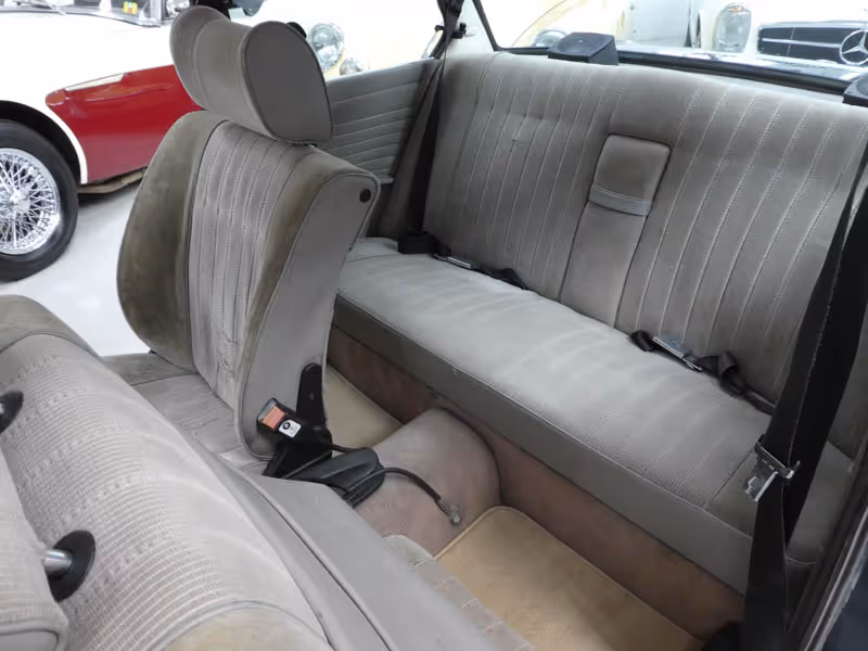 Finished in the original factory specification of Arktisblau Metallic with light cloth interior and retains all of its 'Lux' features that made it that extra bit special - these include wooden door and dashboard trims and wooden gear knob, rear centre armrest and the original Blaupunkt radio cassette player is still there with a very period retro microphone for dictating notes....even the original factory blue/green tinted glass with its 'Acthung' sticker is in situ.