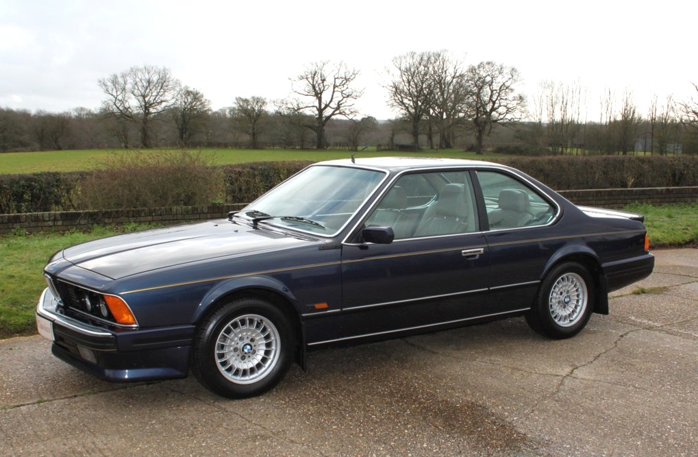 The E24 is instantly recognizable thanks to its long, low silhouette and the iconic “shark nose” front end. The forward-leaning grille and slim headlights give the car a predatory stance, while the wide C-pillars and frameless doors reinforce its coupe identity.