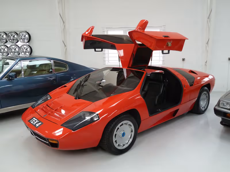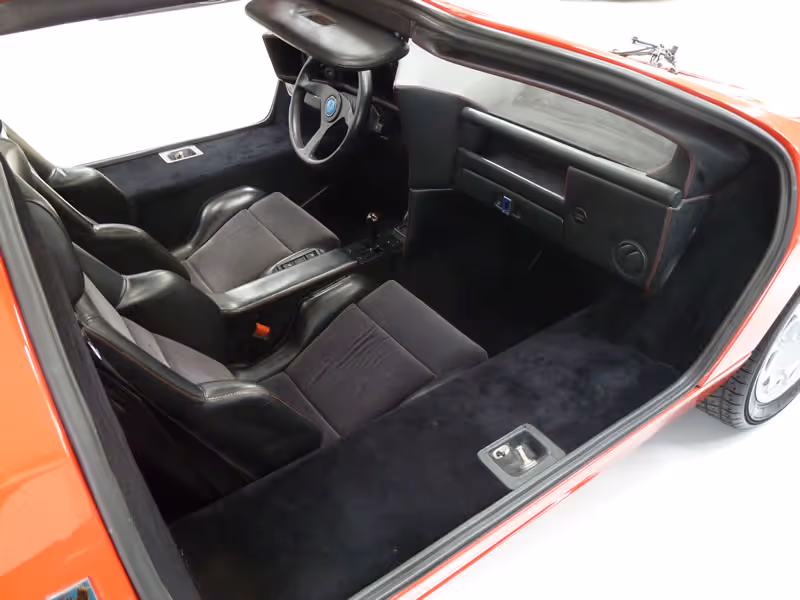 At a little under 14ft long, this is not one of those massive and unwieldy cars; nor is it a heavy weight, being just 1350 kgs. Power from this 5.0 Litre V8 32 valve unit is 330 bhp which is transferred via the tried and tested ZF 5 Speed gearbox to immense 345/35x15 BBS alloys; we're talking sub 5 seconds for the 0-60 dash and something approaching a 180 mph top speed, so propelling this car into real super car performance league...now remember this was 34 years ago, quite phenomenal!