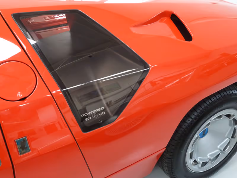 This car, a Imperator 108i, can trace its DNA back to the CW311, a project he worked upon in tandem with the German Tuning House, BB (Ranier & Dieter Buchmann) back in 1978, which was the spiritual successor to Mercedes own Wankel-engined C111 of 1969. Taking control of both project and company in 1984, Schulz first introduced the 108i at the Geneva Salon the same year along side his already well received Spyder 033.