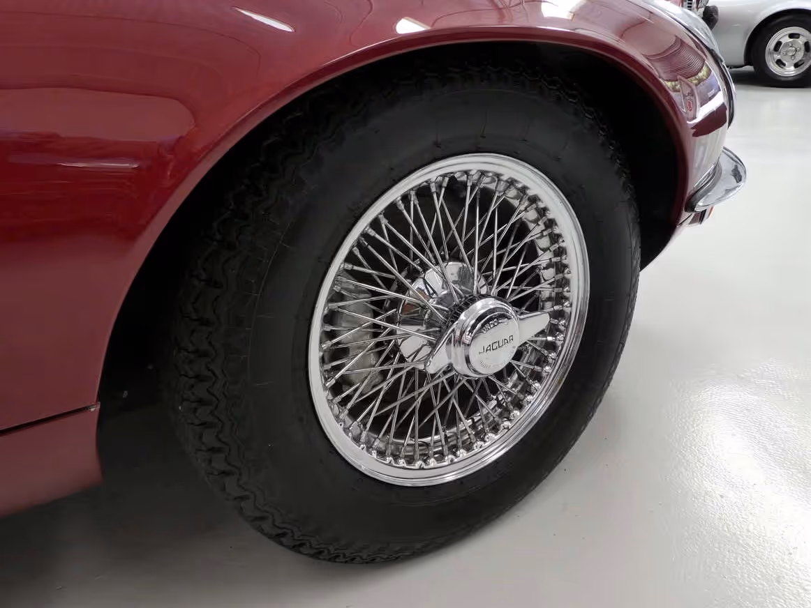 Nothing of consequence has changed in the intervening 17 years other than the mileage now stands a smidgen higher at 27,225. The regency red paint work presents beautifully whilst the biscuit leather interior looks eerily new, quite amazing given the Jaguar is nearly 50 years old...a real testament to careful and sensible ownership.