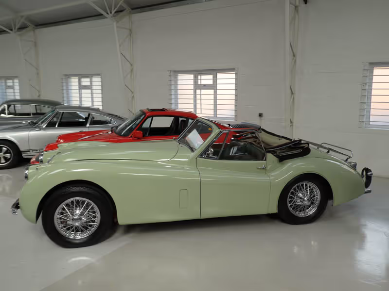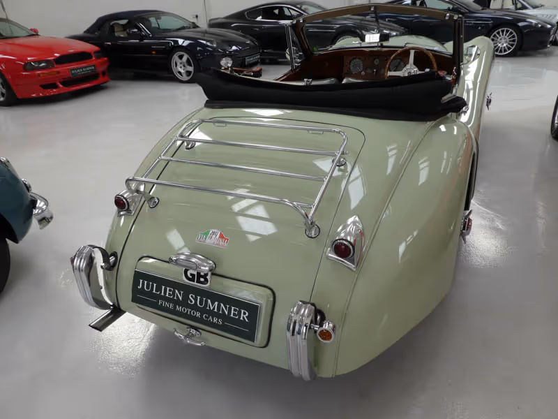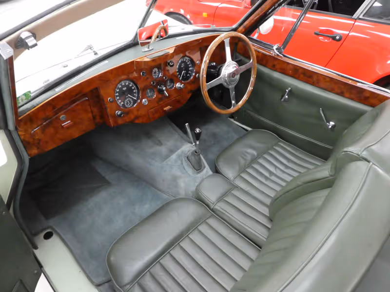 Finished in its original factory specification pastel green, the bodywork is in excellent condition as is the vitually unblemished Forest green leather interior having been retrimmed back in 2011.
