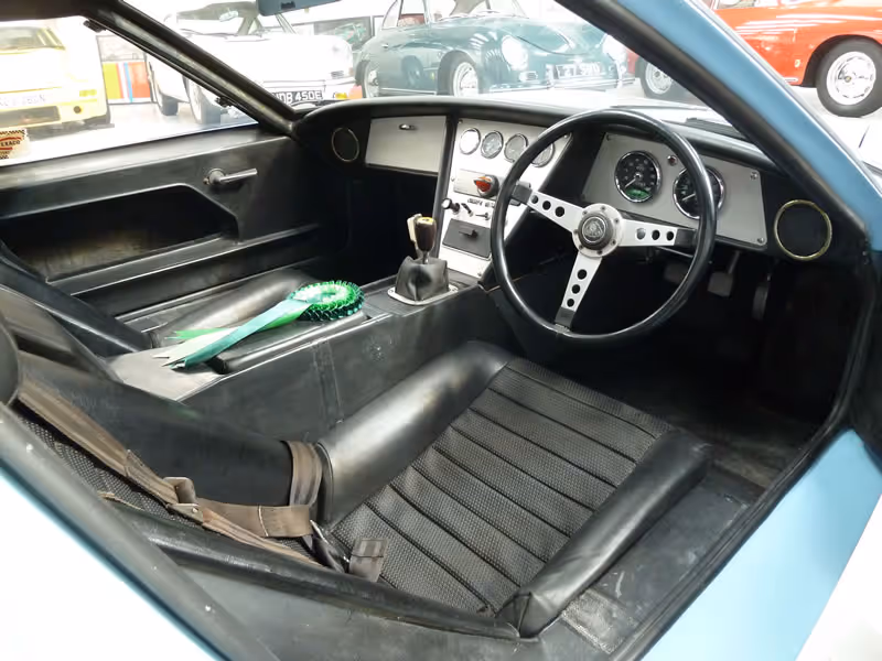 The lightweight body shell had suffered the usual crazing, so necessitated much re-tissuing and the body re-profiled with a lot of attention to panel gaps which are perfect and frankly much better than when new. The underside of the car is equally perfect. New original spec fuel tanks , fuel retaining tank as well as the oil catch tank all have been beautifully remade to original spec. The original FT 200 "2 bolt" gearbox was fully rebuilt and the complex linkage rebuilt with the correct NOS rare period aircraft spec couplings resulting in an excellent gear change. A full engine rebuild was undertaken and completed by Sam Wilson Racing, with 420 cams fitted for torque and tractability. Dyno tested for an hour, max 175 bhp.
