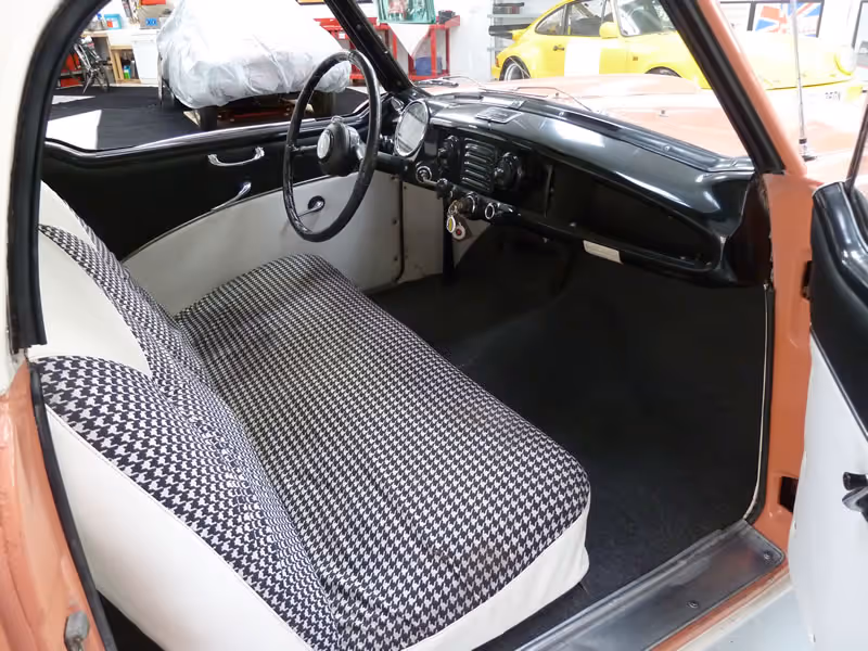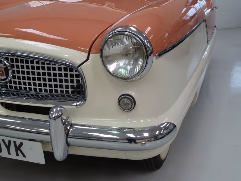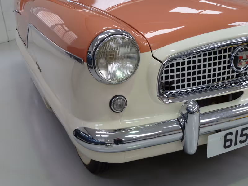 We know from the Heritage Certificate on file that this particular Nash, chassis # NK 3E/32705 was built at Longbridge on 27th February 1957; finished in Coral Red/Frost White, with extras of a heater, radio, whitewalls & laminated windscreen!