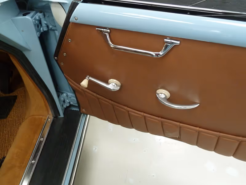 Beautifully present in its original Meissen Blue with brown interior, it pleasingly remains as built with all of the factory options of US bumpers, head rest (Passenger seat only - supplied but not fitted)), speedo in MPH and clock in place, plus, crucially it's fully matching too.
