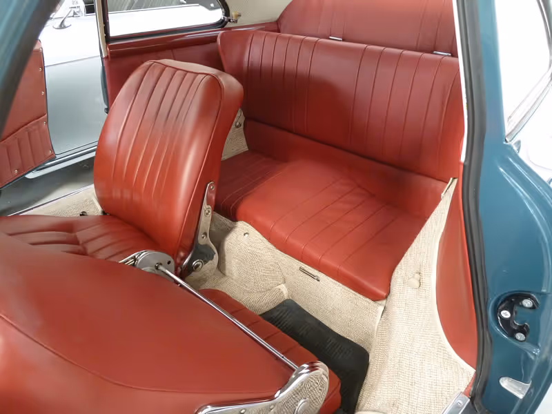 Chassis # 104110 was ordered and supplied new via AFN to her in 1958. The COA states it was painted in Aquamarine blue (5707) with red leather interior and importantly the car today remains as built.