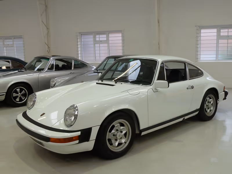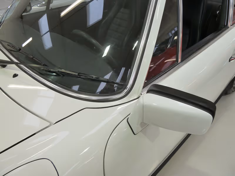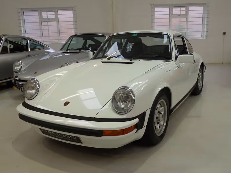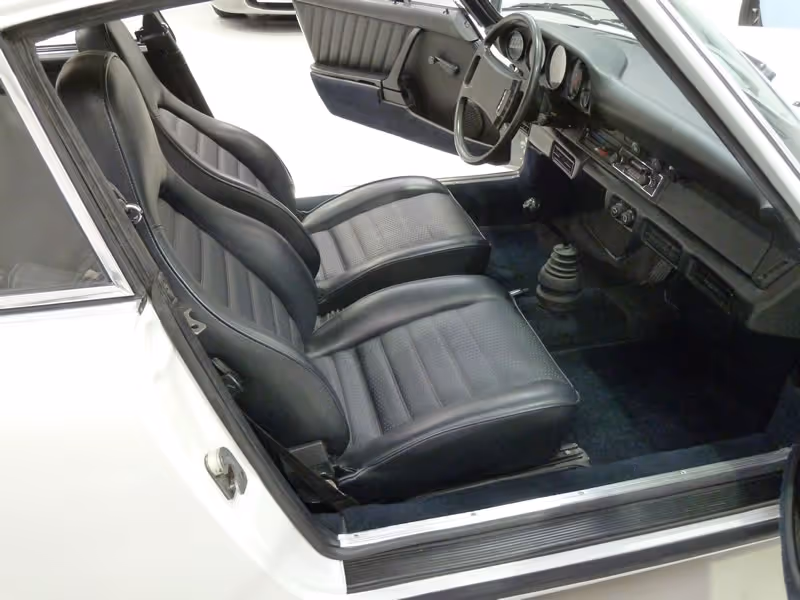 This is a J Series Sportomatic car, only built between August 1975 and July 1976 and has the 2.7 Litre K-Jetronic fuel injection, essentially a detuned version of the RS engine, delivering 175 BHP. Finished in unblemished Gran Prix white with with contrasting blue leatherette seats and blue carpets. A standard built car with no sunroof, but pleasingly with the added refinement of air-conditioning.