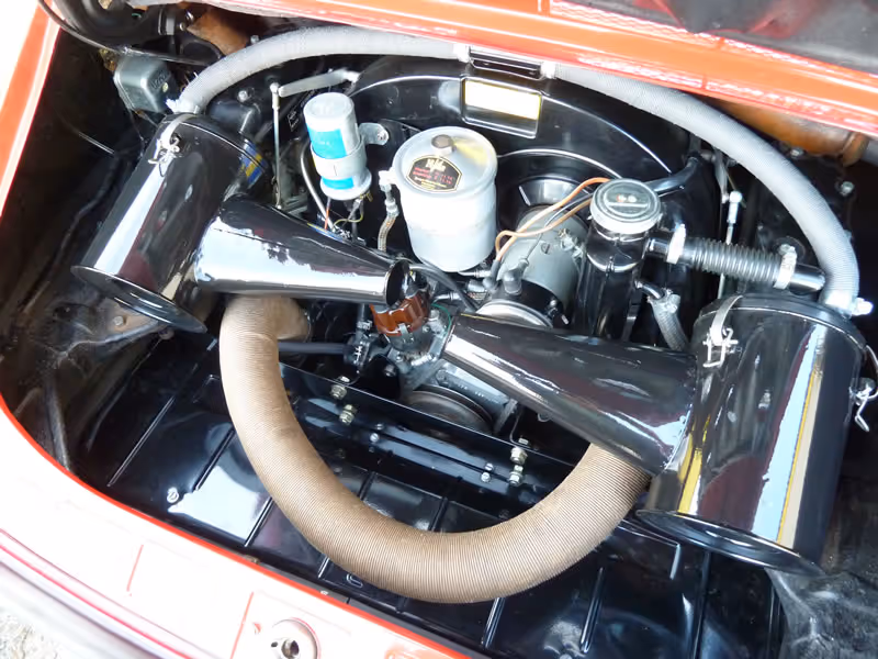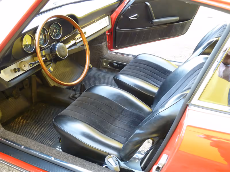 The suspension is as per original specification and is at the same ride height Porsche set it up in 1965. The braking system has been recommissioned and the engine completely rebuilt approximately 2000 miles ago by Porsche specialists (file invoices total in excess of £6000) with new exhaust, all tinware powder coated, and engine bay fully detailed including the rarely fitted rain tray.