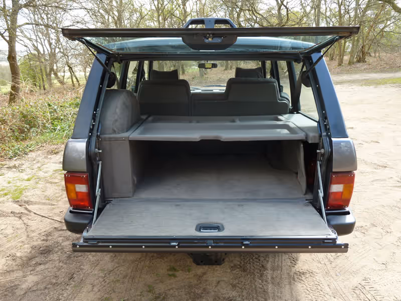 Professionally repainted in Westminster grey, refurbished and diamond cut alloys fitted with 4 new BF Goodrich all terrain tyres, bespoke headlining, new headlights, full service including all fluids changes (engine oil, diff and brakes) spark plugs, pulley belts and tensioner and lock springs. A brand new aluminium rear tail gate was also fitted and to preserve her for another generation the underneath was 'waxoiled'.