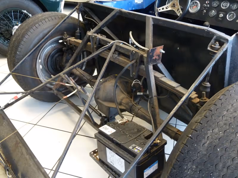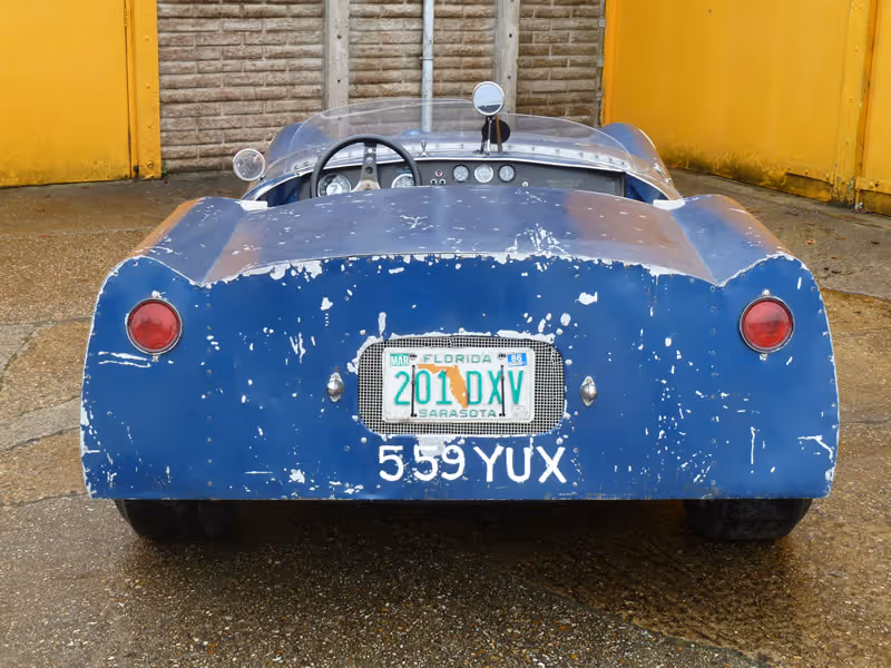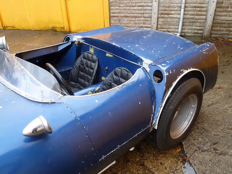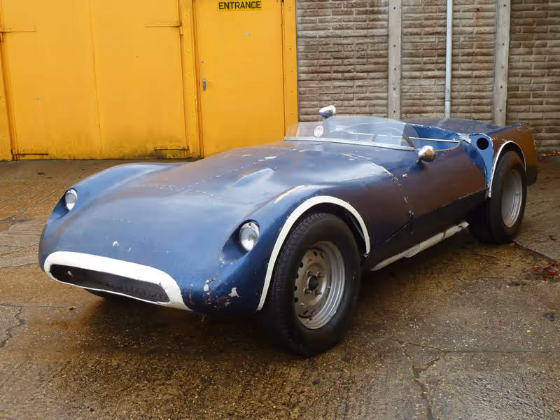 It originally featured a 2.6 litre Ford Zephyr MkII power unit race prepared by Bud Child in Vancouver and although this unit is included in the sale it is currently running on another 2.6 race engine. It has a tubular space-frame chassis typical of the era which carries the Ford power unit mated to MG TD transmission and modified BMC-based suspension with a transverse leaf spring at the rear and torsion bars and telescopic shock absorbers at the front