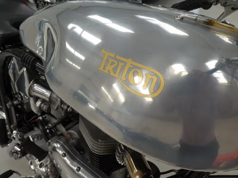 Complete with its custom hand-made aluminium 'Manx' specification racing tank and specially made single race-seat, this Triton benefits from numerous desirable components and improvements which combine to create what must be one of the most desirable Tritons currently available.