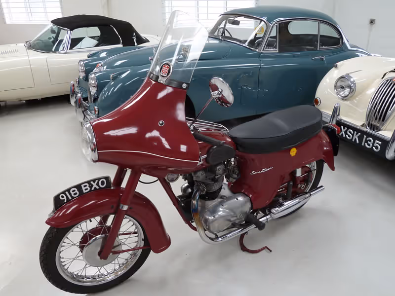 Many of the manufacturers in period produced machines with enclosed fairings and this design penned by the legendary Ed Turner and Jack Wickes, was fondly referred to as the 'Bathtub', as it was intended for the professional fellow who wanted to keep the rain and dirt off the trousers and arrive at work looking 'spiffy'.