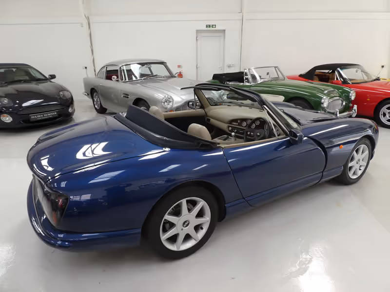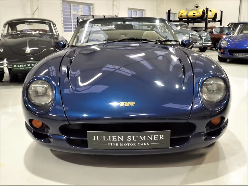 Regular and thorough maintenance has been completed by recognised TVR specialist throughout the its' life and the car despite not having been repainted, has very few marks save a few usual stone chips evident to the nose cone.