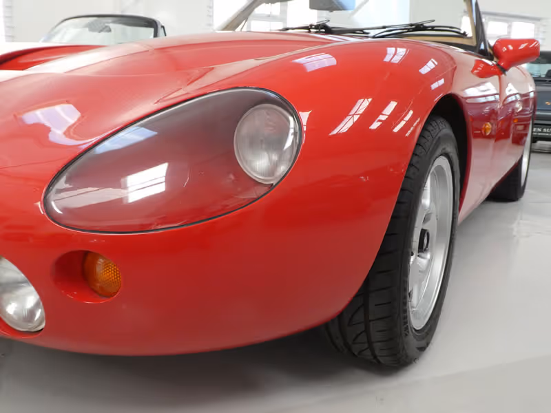 The proven recipe of shoehorning a large capacity V8 into a TVR began some 30 years earlier when Jack Griffith chose to replace his Grantura's 4 cylinder lump with a Ford 4.7 V8 - in doing so he not only lent his name to the now iconic model but also formulated a design principle that TVR have followed ever since. So much so, that the same dynamic principles have been employed by Gordon Murray and TVR engineers in the latest and third generation of the model, also titled Griffith.