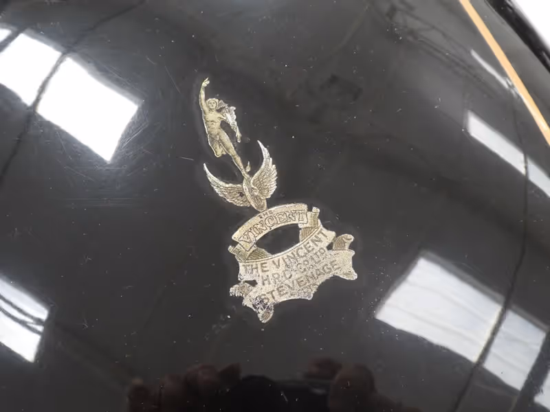 It is told that whilst Philip Vincent was on a sales tour of the USA in 1949, the 'HRD' logo was confused with 'Harley R Davidson'! More than slightly disgruntled, he immediately ordered the factory to remove any reference to HRD by grinding it off the crankcases, inspection caps and replacing the tank side decals with the new name, VINCENT. This motorcycle is one such model and is therefore referred to by Vincent enthusiasts as a transitional model.