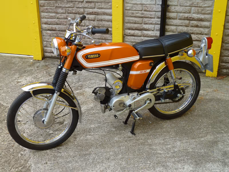 John Peyton who was the UK's residing Minister for Transport at the time (1971 to 1974), and who quite naturally on behalf of the public, erred on the side of caution with all things motoring; a good case in point, was that he made in 1973 the wearing of crash helmets compulsory, jumped at the idea and decreed that all UK 16-year olds could ride only mopeds too. Enter stage left Yamaha, with the SS (Sixteener Special), forerunner to the UK FS1-E.